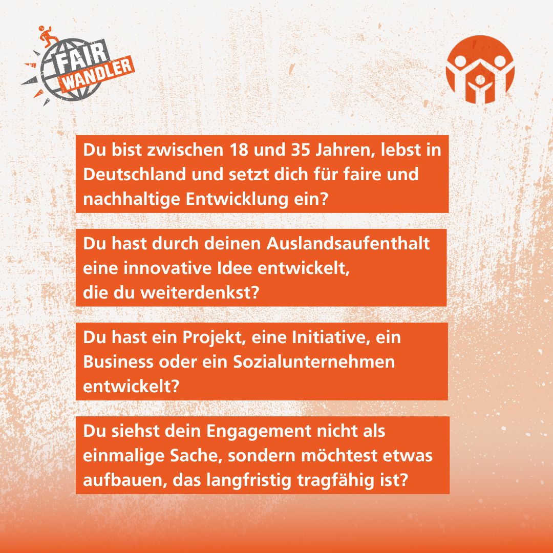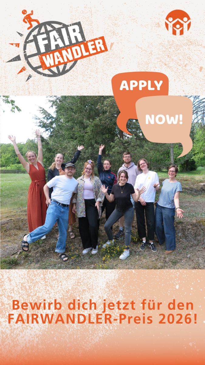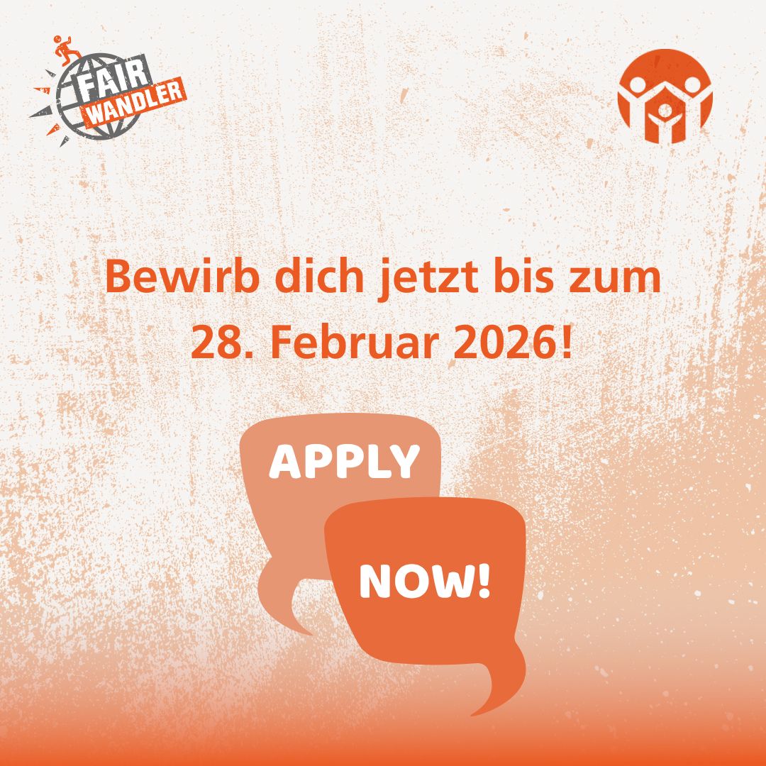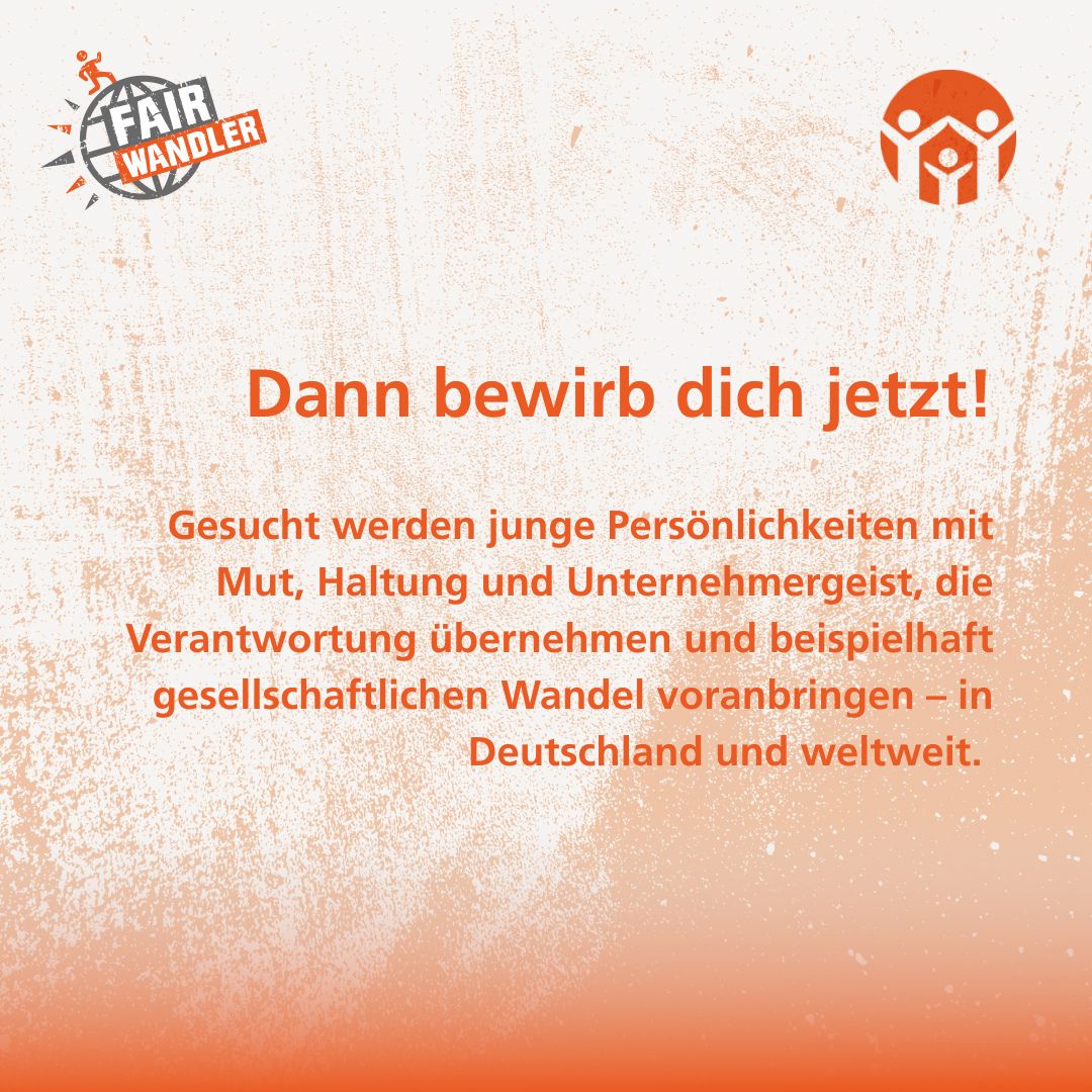Wenn Du einen eigenen Beitrag erstellen willst, findest Du unten Downloads zum aktuellen Bewerbungsaufruf, die Du frei verwenden kannst, um junge Menschen auf Deinen Kanälen auf den FAIRWANDLER aufmerksam zu machen – sei es über Newsletter, Social Media oder indem Du eine E-Mail versendest.