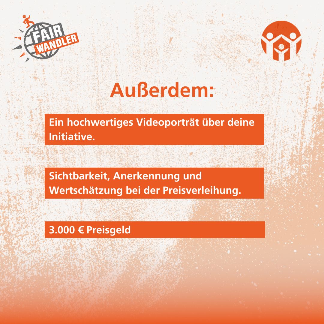 Wir wollen die Ausschreibungsinfo zum FAIRWANDLER-Preis & Programm mit möglichst vielen Menschen teilen und freuen uns, wenn Du uns dabei unterstützen möchtest.